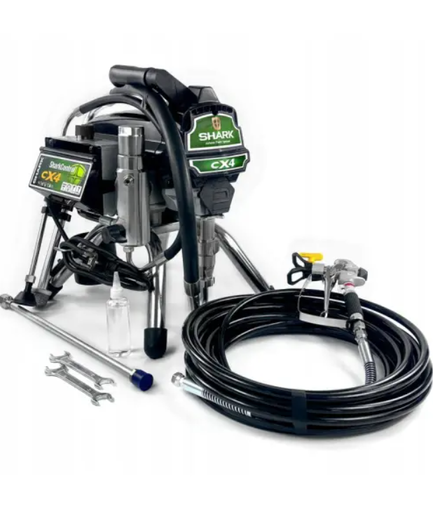 W tej ofercie chcemy przedstawić państwu do wypożyczenia nasz Agregat malarski firmy SHARK model CX4 do malowania we wnętrzach budynku. Dzięki innowacyjnej konstrukcji urządzenia, możesz szybciej wykonać swoją pracę, uzyskując lepsze wykończenie powierzchni przy niewielkich kosztach inwestycji. Agregat posiada kompaktową oraz łatwą do przenoszenia i czyszczenia konstrukcję. Maksymalne ciśnienie robocze wynosi 227 bar, a wydajności 2,7 l/min.